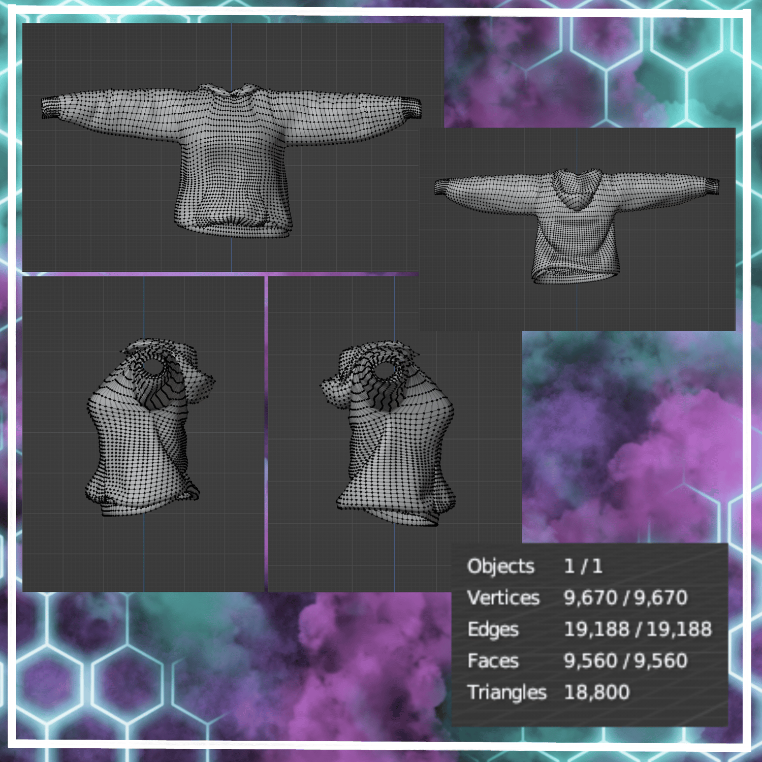 This Hoodie was created in Blender using Simply Cloth Pro - Done all the Textures using Procreate.